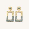 JW PEI Brincos de retângulo geométricos de abertura aberta 18CT Gold Plated & Green Nano – JW PEI Brasil F628387